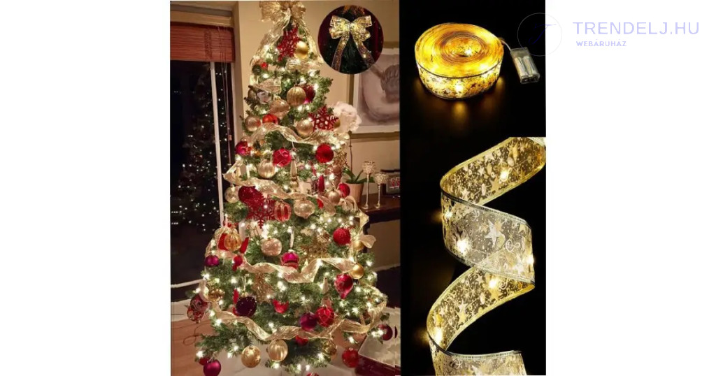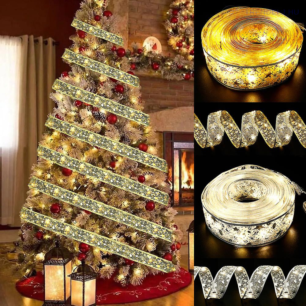 Karácsonyi LED-es szalag 5m (ezüst, arany meleg fehér fénnyel)