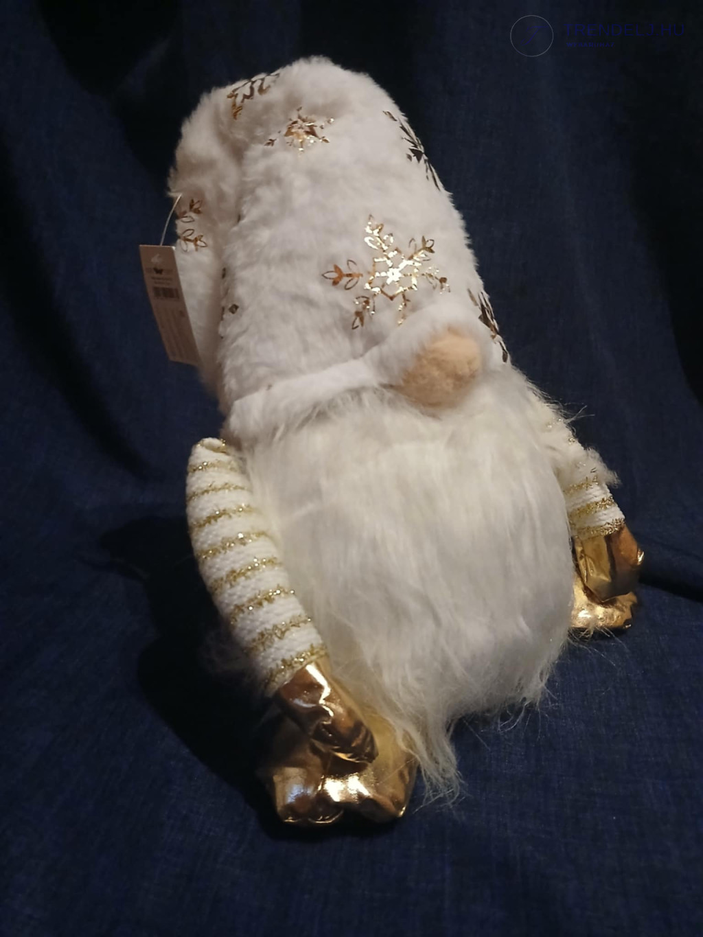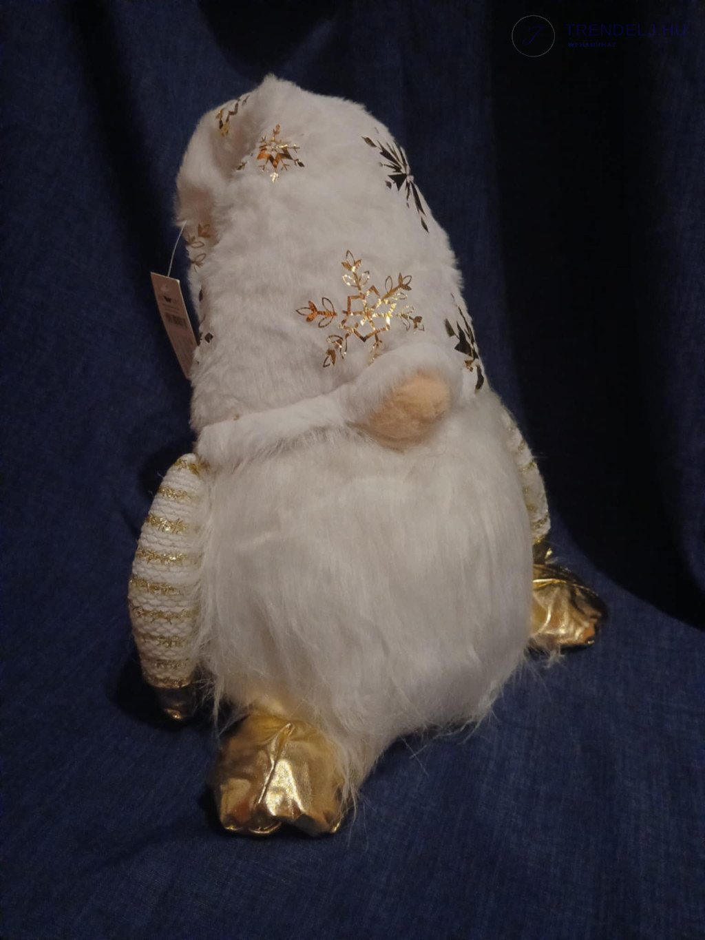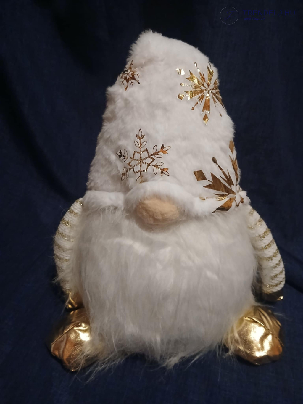 Plüss/textil fehér-arany színű manó, súlyozott aljjal.